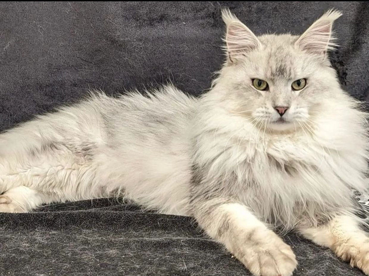 Boaz is a striking black silver shaded Maine Coon stud, originally imported from Switzerland and now residing in Northern California. With his regal appearance, affectionate nature, and international pedigree, Boaz brings world-class genetics to our cattery.